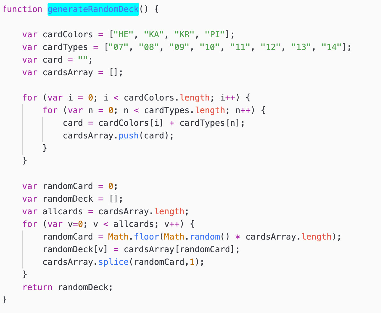 For the computer savvy folks - this is the used algorithm that generates a random card deck at the beginning of each round: